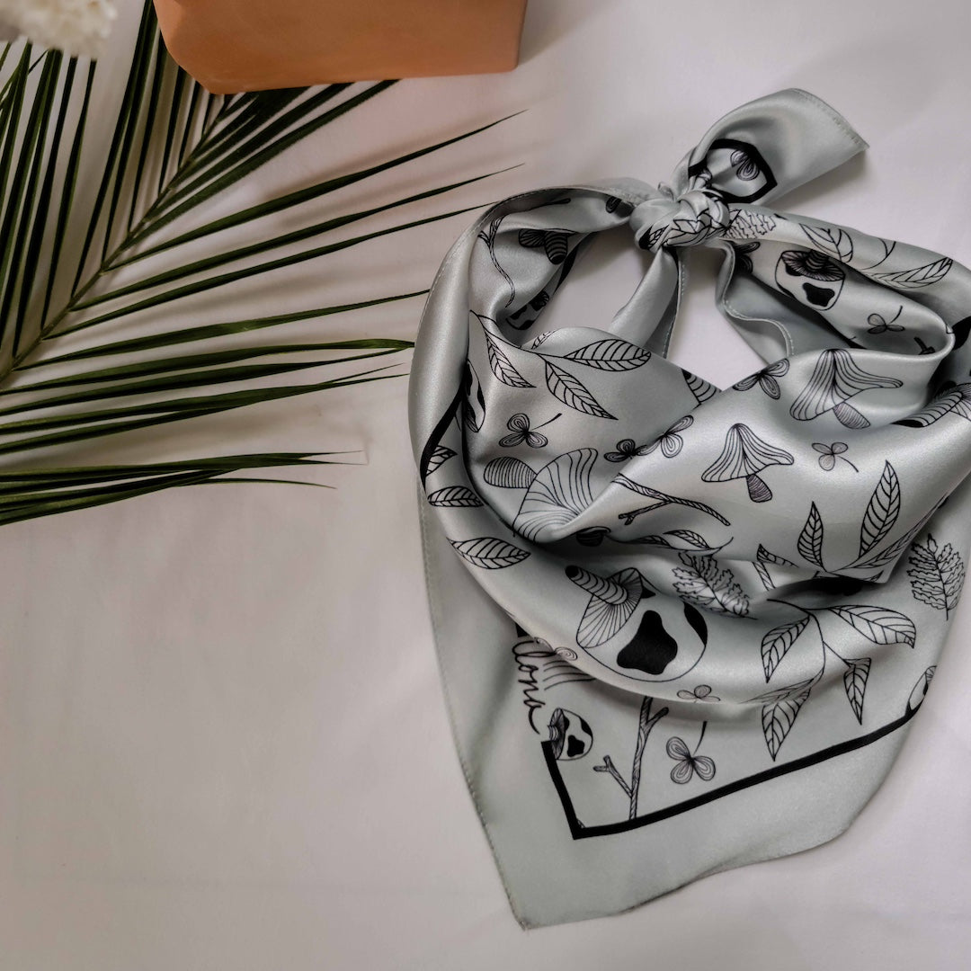 Mystical Mushroom 100% Mulberry Silk Scarf - Silvery Green
